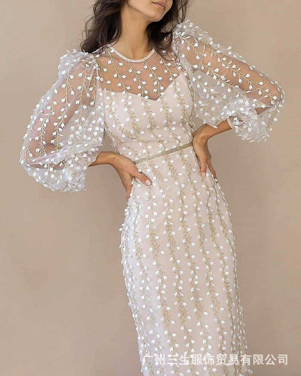 فستان أبيض مع مواد بولكا نقطة نصف سهلة