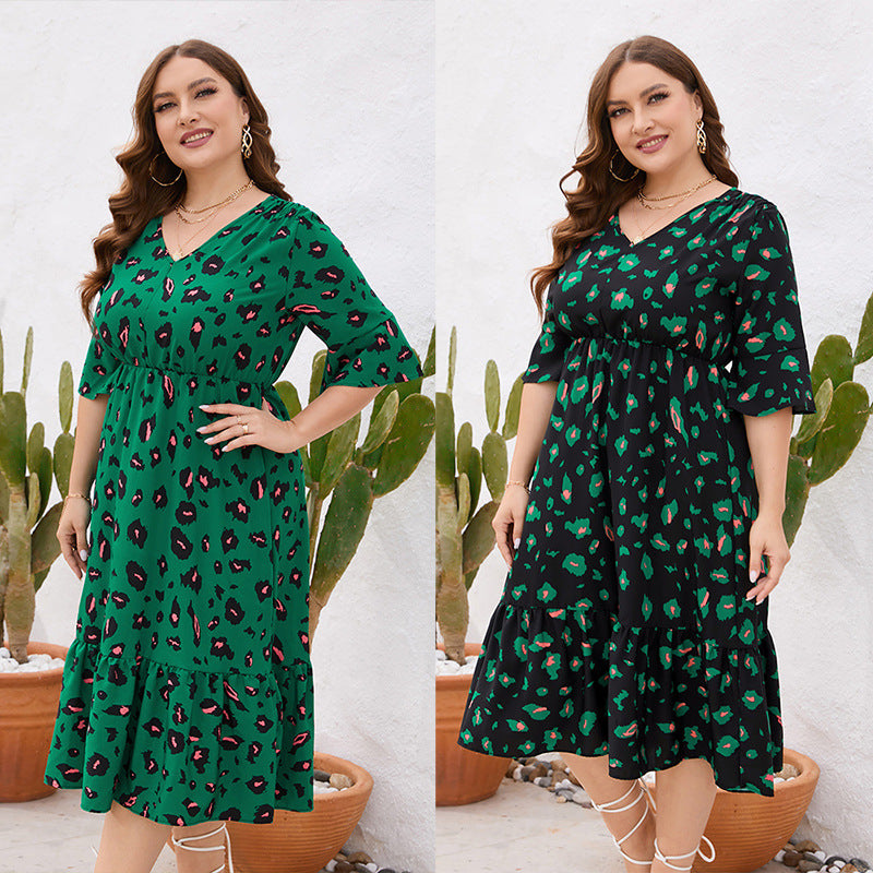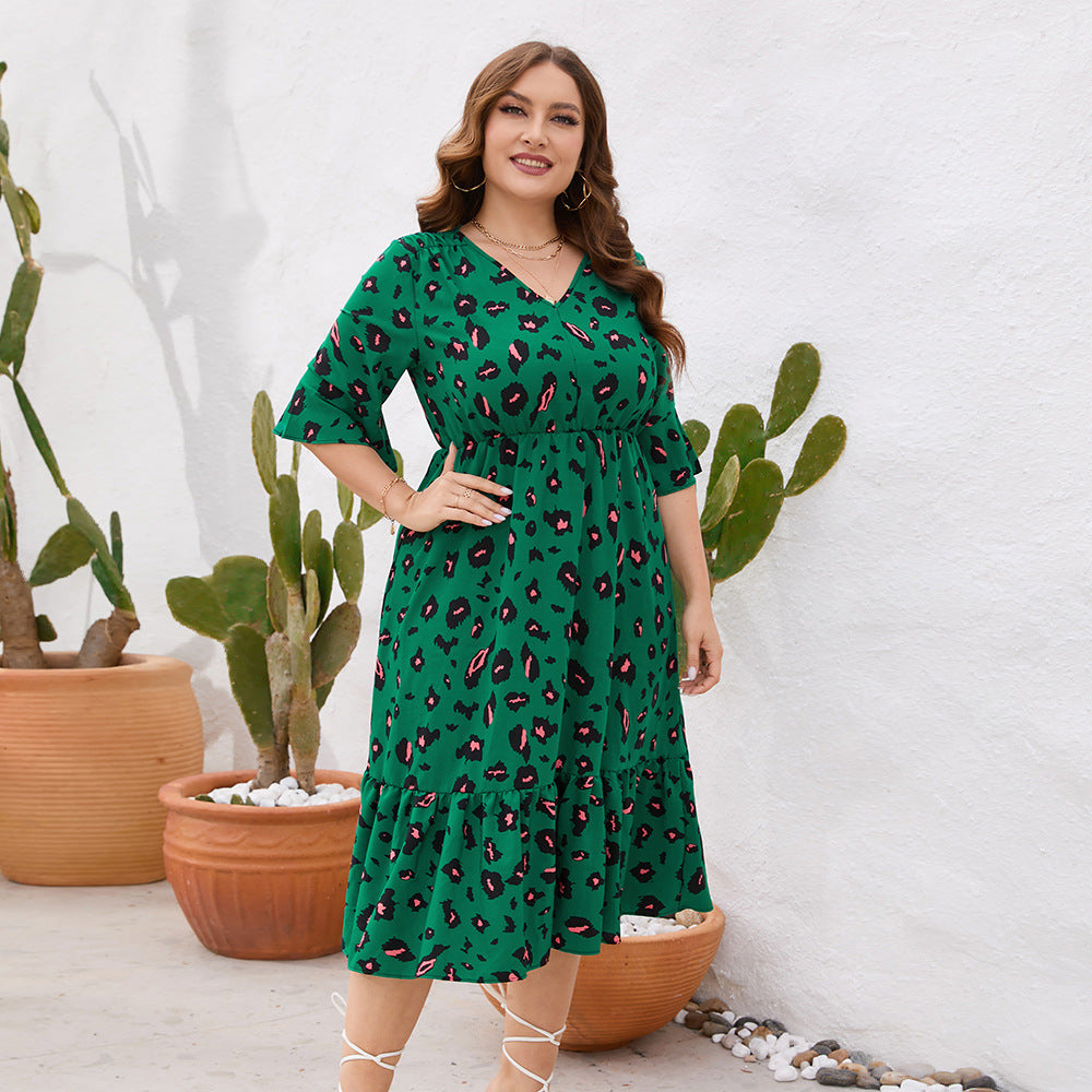 Take animal print to new heights wearing the Women's Vibrant Animal Print Midi Dress with Three Quarter Length Sleeves. This dress features two animal print styles in green and pink.