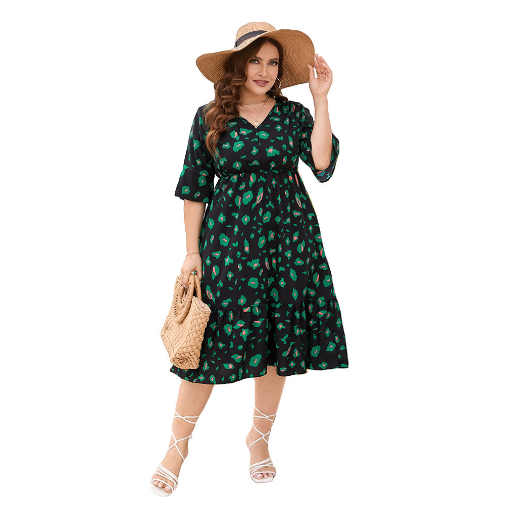 Women's Vibrant Animal Print Midi Dress with Three Quarter Length Sleeves