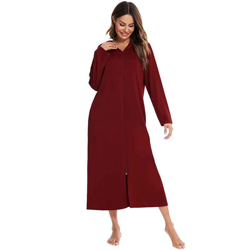 Goditi il ​​comfort classico di una felpa con cappuccio grande e sciolta in forma di pigiama con l'abito con cappuccio con cappuccio con zip maxi con cappuccio che ha un cappuccio accogliente per tenerti tostato. Ha maniche lunghe ed è disponibile in uno dei cinque colori.