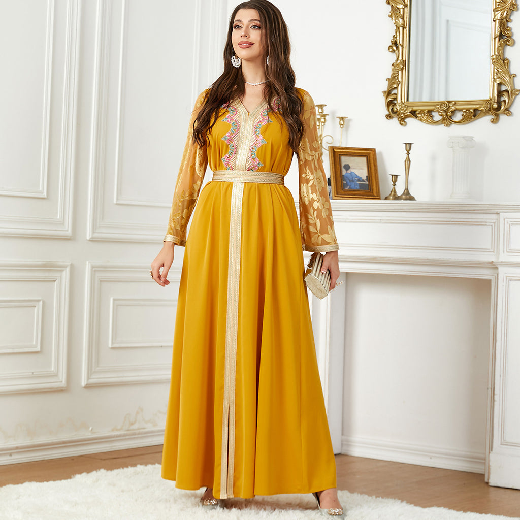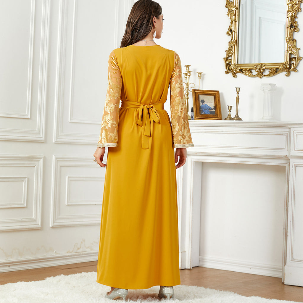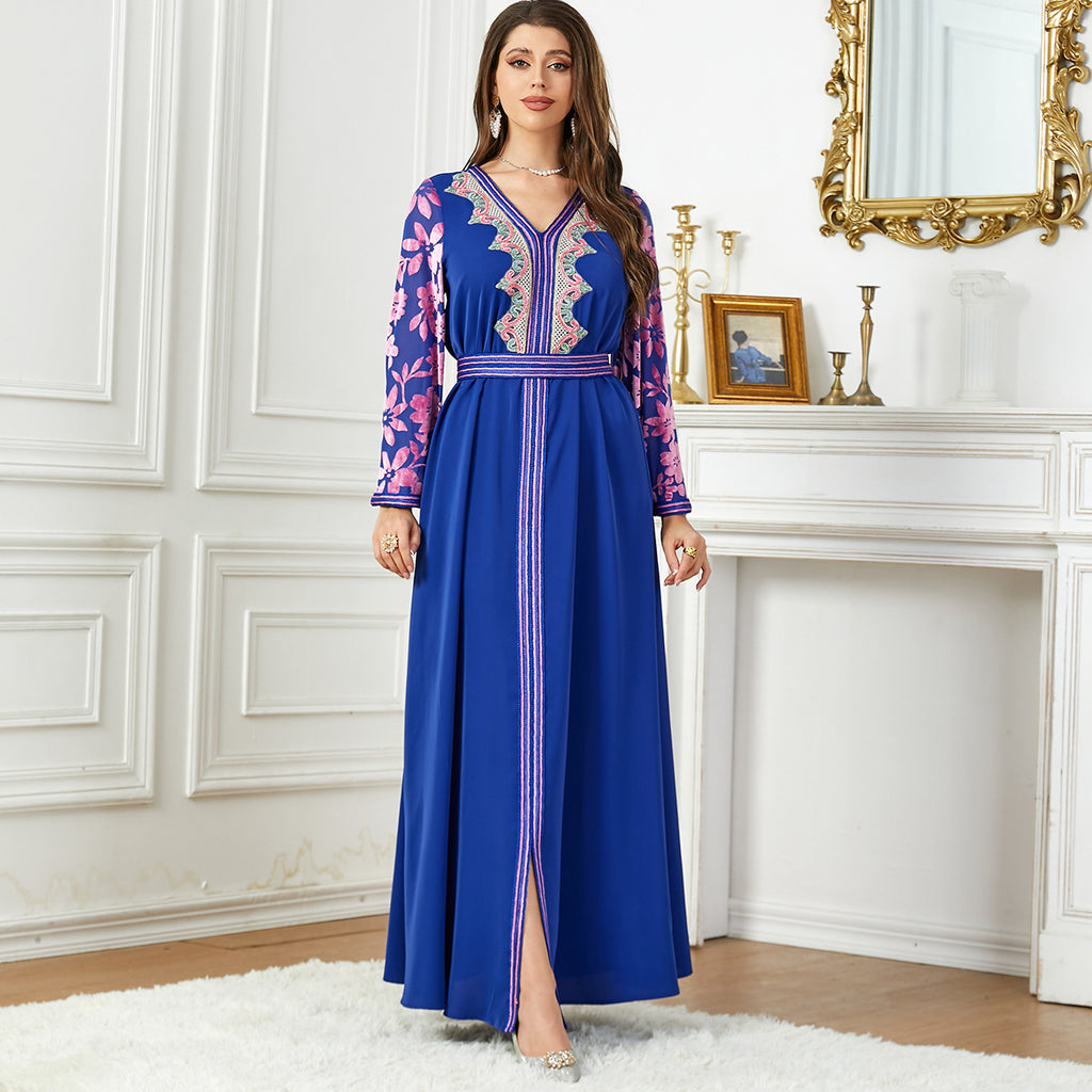 Women's Long Sleeve Maxi Dress with Floral Patterned Sleeves