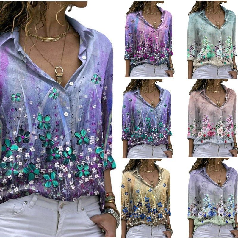 Bloemenprint met lange mouwen knoop naar beneden dames top
