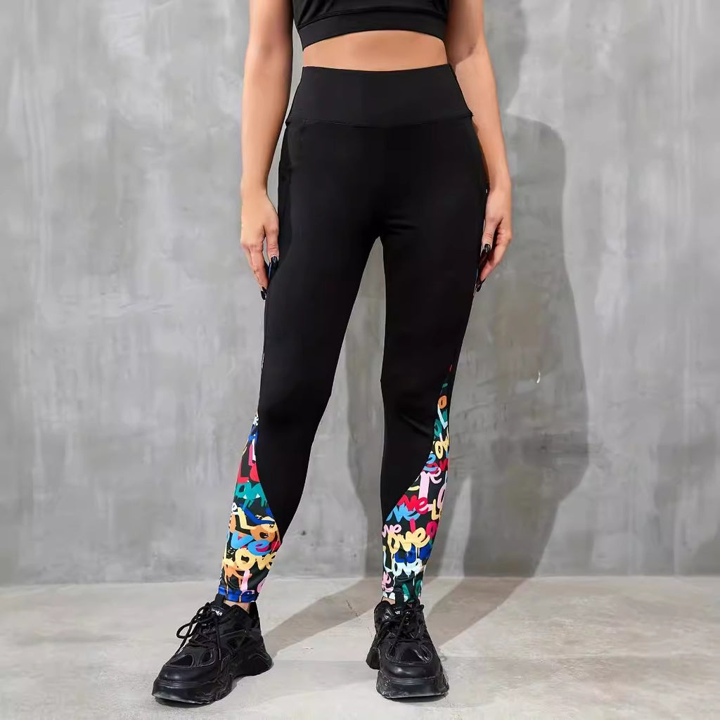 Color Contrast Patchwork Fashion Hip Raise High Waist Tight Sports Yoga Pants Leggings