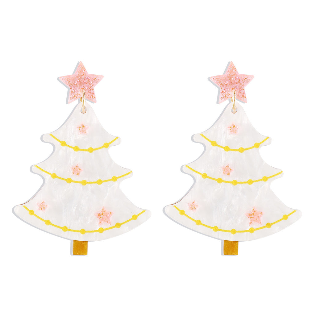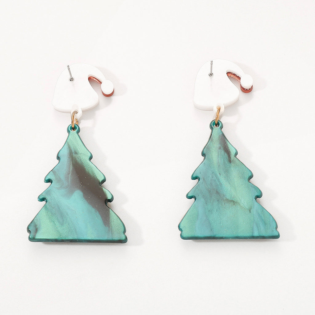 Festive Christmas Tree Dangle Drop Earrings with Santa Hat Stud
